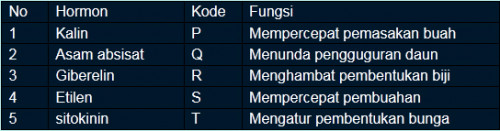 3 dan Q d. Hormon dan zat pengatur tumbuh tanaman. Zat kimia yang dihasilkan dari organ tubuh tertentu dari kelenjar endokrin yang memacu fungsi organ tubuh tertentu.