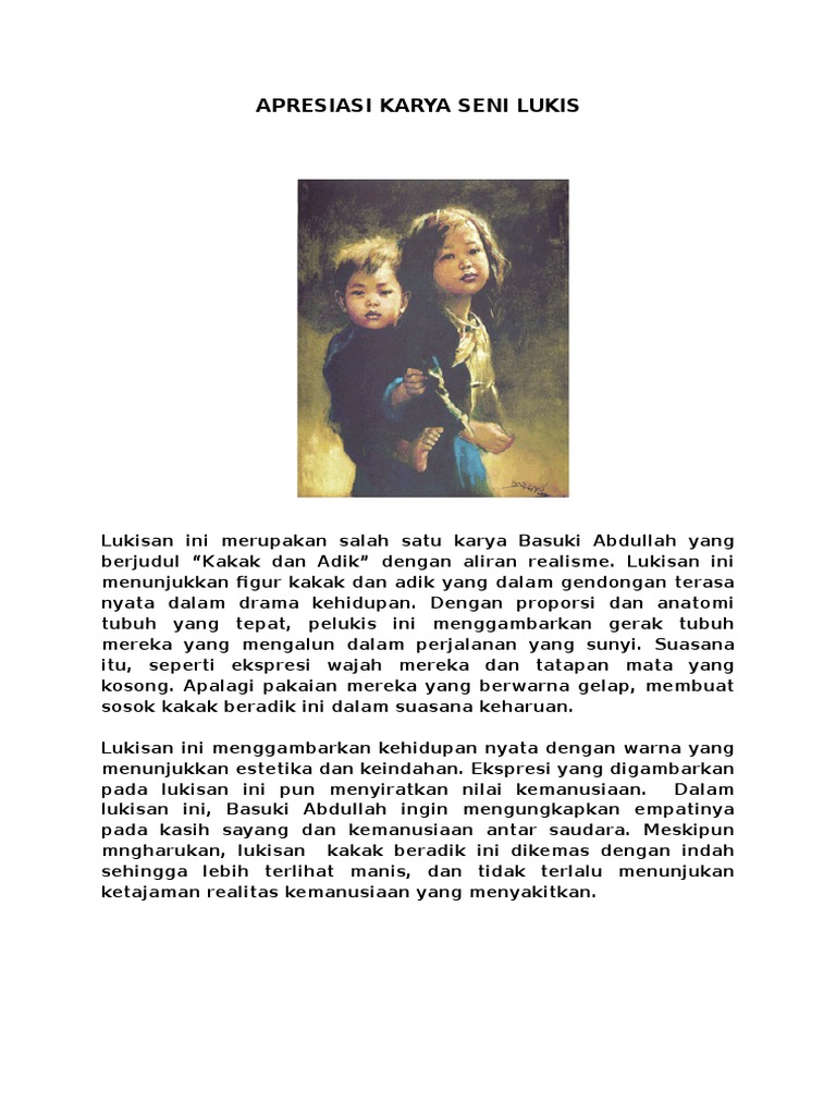 Apresiasi Dan Kritik Seni Rupa Kritik Lukisan Kakak Dan Adik
