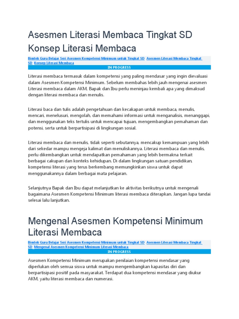 Anda mendapatkan lencana yang ke-3. Bimtek Guru Belajar Seri Asesmen Kompetensi Minimum untuk Tingkat SD Asesmen Literasi Membaca Tingkat SD Contoh Butir Soal Asesmen Literasi Membaca Tingkat SD. Asesmen Kompetensi Minimum AKM tahun 2021 hanya mencakup literasi membaca dan literasi matematika numerasi.