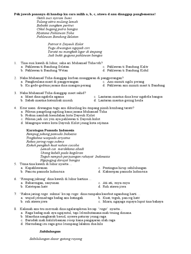 Soal Uas Bahasa Sunda Kelas 8 Smpmts Semester 1